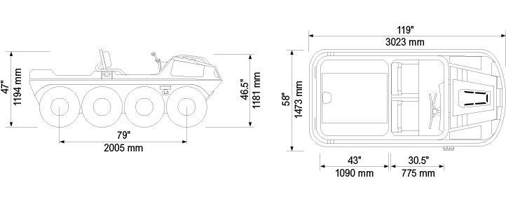 A Frontier 8x8 S négyütemű OHV V-Twin EFI benzinmotorral, elektromos önindítóval, valamint levegőhűtéses Kohler Command Pro motorral felszerelt kétéltű terepjáró, extrém terepviszonyokhoz tervezve. Akár 453 kg (1000 font) teherbírás szárazföldön, 408 kg (900 font) teherbírás vízen, 6 utas szállítása szárazföldön, 4 utas szállítása vízen, valamint 635 kg (1400 font) vontatási kapacitás.